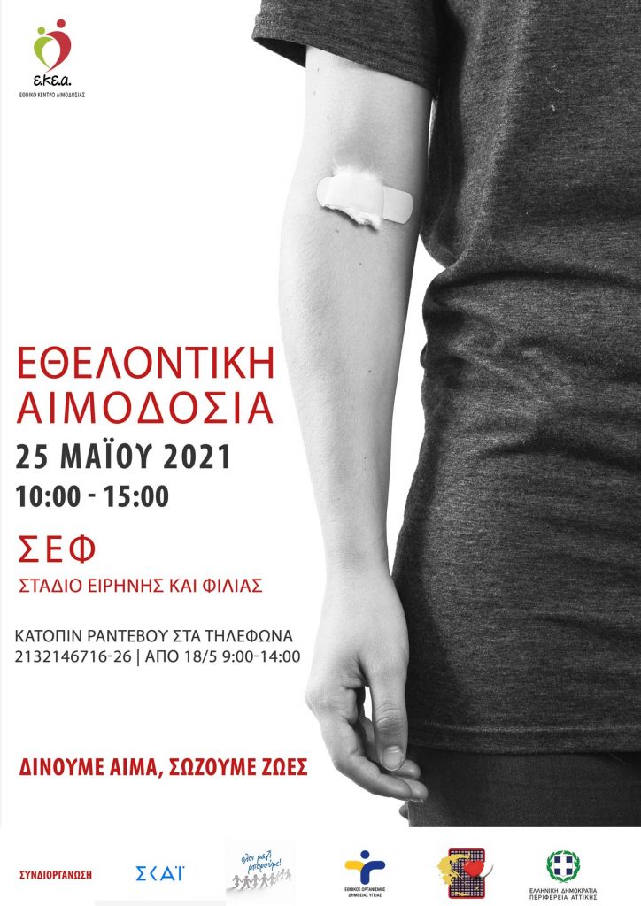 Το Ε.ΚΕ.Α. με πλήρη συναίσθηση της ευθύνης του για την ασφάλεια του αίματος και των αιμοδοτών, αλλά και για την επάρκεια των αποθεμάτων αίματος της χώρας οργανώνει σε συνεργασία με τον τηλεοπτικό σταθμό «ΣΚΑΪ», το «Όλοι Μαζί Μπορούμε», τον Εθνικό Οργανισμό Δημόσιας Υγείας (ΕΟΔΥ), την Περιφέρεια Αττικής και την Πανελλήνια Ομοσπονδία Συλλόγων Εθελοντών Αιμοδοτών (Π.Ο.Σ.Ε.Α.), δράση εθελοντικής αιμοδοσίας στο Στάδιο Ειρήνης και Φιλίας, την Τρίτη 25 Μαΐου από τις 10:00 το πρωί έως τις 15:00 το απόγευμα.