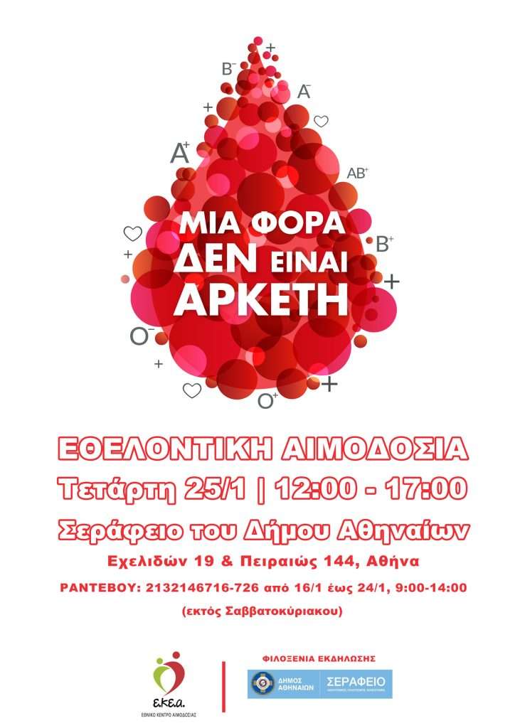 ΕΘΕΛΟΝΤΙΚΕΣ ΑΙΜΟΔΟΣΙΕΣ ΣΤΟ Σ.Ε.Φ (21.01) ΚΑΙ ΣΤΟ ΣΕΡΑΦΕΙΟ ΤΟΥ ΔΗΜΟΥ ΑΘΗΝΑΙΩΝ (25.01)