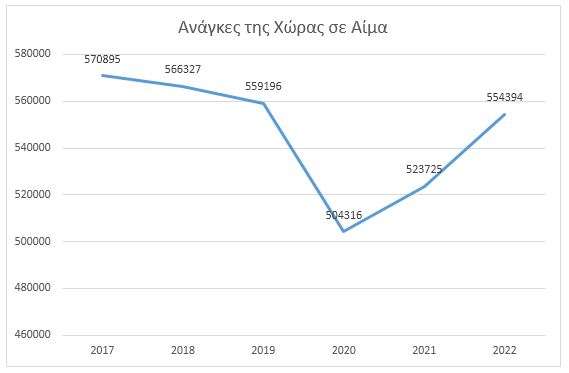 Οι ανάγκες της χώρας μας σε αίμα καταδεικνύεται στο κάτωθι διάγραμμα :