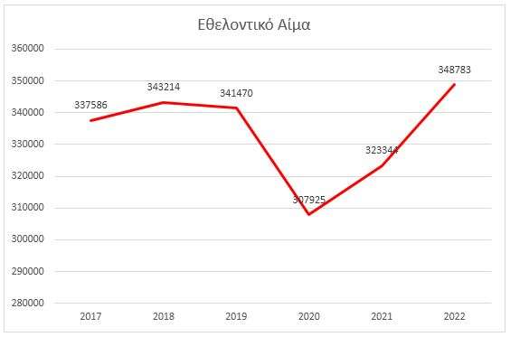 Αξιοσημείωτο είναι ότι κατά την διάρκεια της πανδημίας covid-19 οι ανάγκες σε αίμα ήταν λιγότερες του συνήθους λόγω του ότι η προτεραιότητα στην λειτουργία του ΕΣΥ ήταν η αντιμετώπισή της. Φαίνεται επίσης ότι η στρατηγική για εξορθολγισμό των μεταγγίσεων και της χρήσης του αίματος έχει θετικά αποτελέσματα. Από τις 534494 μονάδες αίματος που συγκεντρώθηκαν το 2022 , οι 348783 μονάδες συγκεντρώθηκαν από εθελοντές αιμοδότες ήτοι το 65,34 % .
