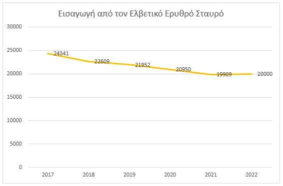 Λόγω του ότι στην Χώρα μας δεν έχει εμπεδωθεί η συνείδηση του σταθερού αιμοδότη με συνέπεια και διάρκεια αναγκαζόμαστε να εισάγουμε αίμα από τον Ελβετικό Ερυθρό Σταυρό , αλλά και οι εισαγόμενες ποσότητες μειώνονται στο χρόνο .