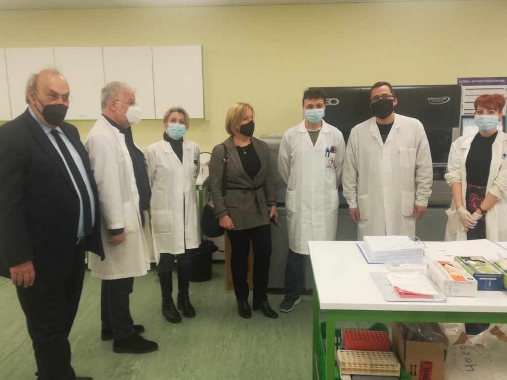 Το Εθνικό Κέντρο Αιμοδοσίας (Ε.ΚΕ.Α) επισκέφθηκε το πρωί της Τετάρτης η αναπληρώτρια υπουργός Υγείας Μίνα Γκάγκα. Η κ.Γκάγκα βρέθηκε στους χώρους όπου πραγματοποιείται ο έλεγχος των αποθεμάτων αίματος, ενώ είχε την ευκαιρία να συζητήσει με τον Πρόεδρο του φορέα κ. Παναγιώτη Κατσίβελα, τον επιστημονικό διευθυντή, κ. Κωνσταντίνο Σταμούλη, καθώς και με όλο το επιστημονικό προσωπικό.