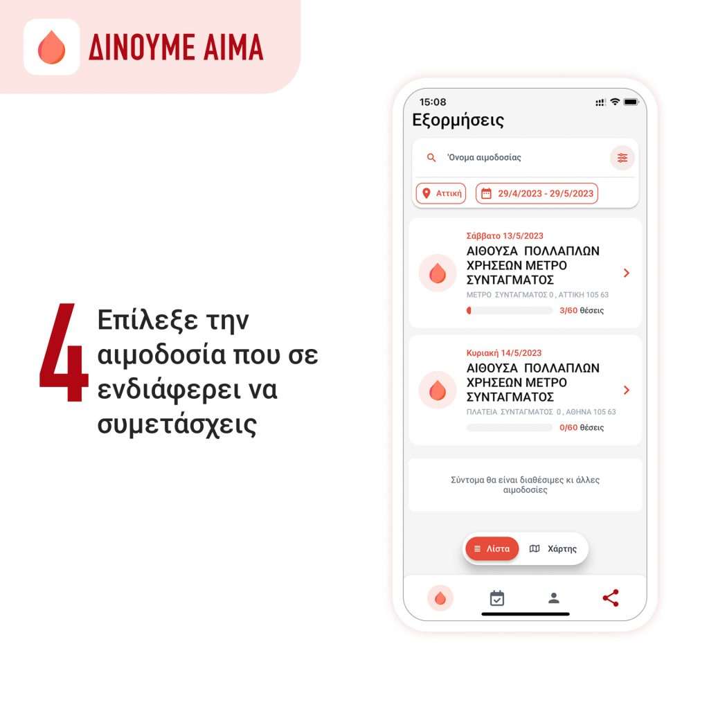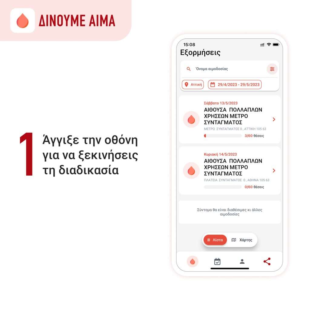 Οδηγίες για τη χρήση της εφαρμογής (app) “Δίνουμε Αίμα”